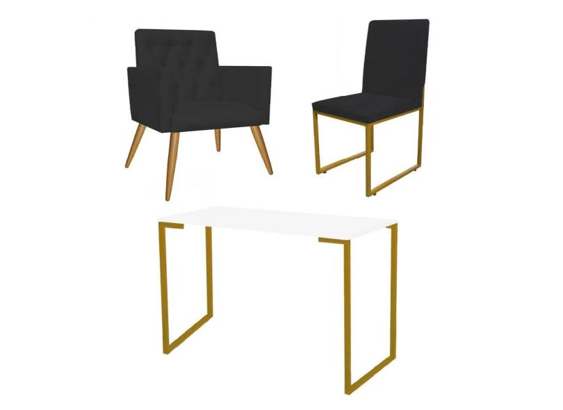 O menor preço encontrado no Brasil para Kit Escritório Stan Poltrona Capitonê com Cadeira e Mesa Industrial Branco Dourado Suede Preto - Ahz Móveis atualmente é R$ 1.119,90.