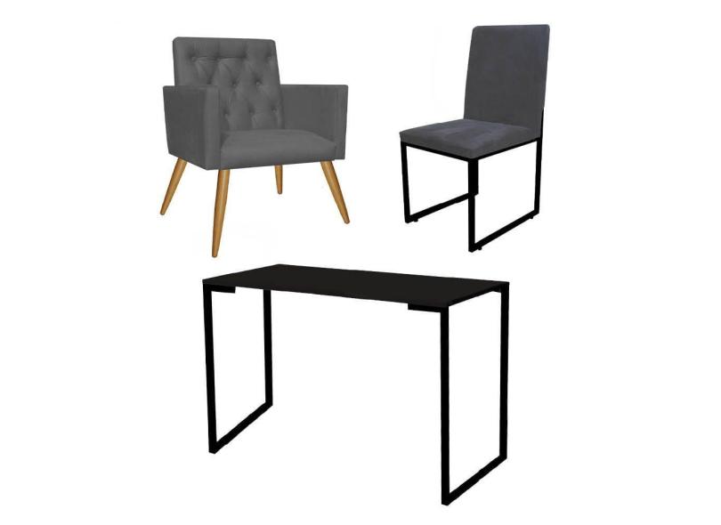 O menor preço encontrado no Brasil para Kit Escritório Stan Poltrona Capitonê com Cadeira e Mesa Industrial Tampo Preto Tecido Sintético Cinza - Ahz Móveis atualmente é R$ 1.119,90.