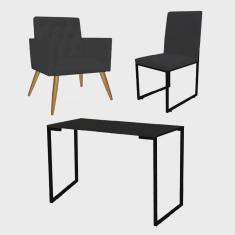 O menor preço encontrado no Brasil para Kit Escritório Stan Poltrona Capitonê com Cadeira e Mesa Industrial Tampo Preto Tecido Sintético Preto - Ahz Móveis atualmente é R$ 1.119,90.