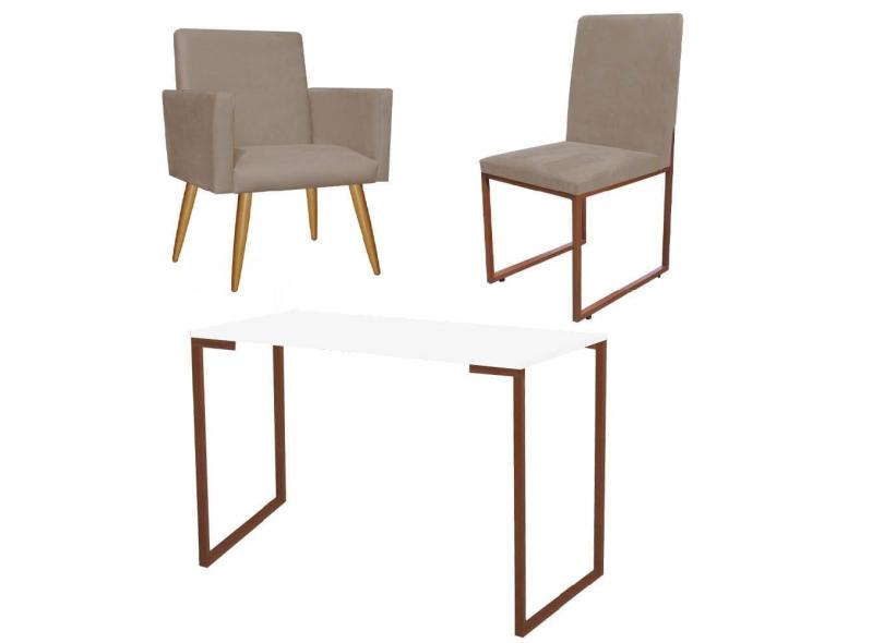 O menor preço encontrado no Brasil para Kit Escritório Stan Poltrona com Cadeira e Mesa Industrial Tampo Branco Bronze Corino Bege - Ahz Móveis atualmente é R$ 999,90.