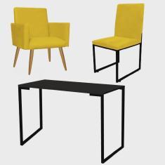 O menor preço encontrado no Brasil para Kit Escritório Stan Poltrona com Cadeira e Mesa Industrial Tampo Preto Suede Amarelo - Ahz Móveis atualmente é R$ 999,90.