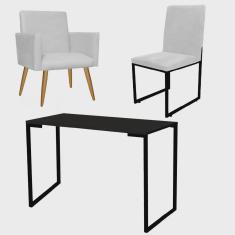 O menor preço encontrado no Brasil para Kit Escritório Stan Poltrona com Cadeira e Mesa Industrial Tampo Preto Tecido Sintético Branco - Ahz Móveis atualmente é R$ 999,90.