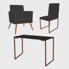 O menor preço encontrado no Brasil para Kit Escritório Stan Poltrona Maria com Cadeira e Mesa Industrial Preto Bronze Corino Preto - Ahz Móveis atualmente é R$ 1.099,90.