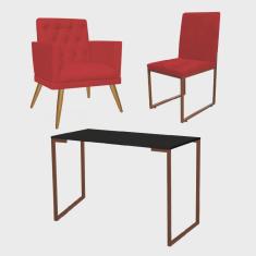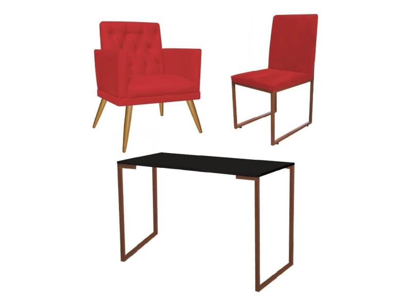 O menor preço encontrado no Brasil para Kit Escritório Stan Poltrona Maria com Cadeira e Mesa Industrial Preto Bronze Corino Vermelho - Ahz Móveis atualmente é R$ 1.099,90.
