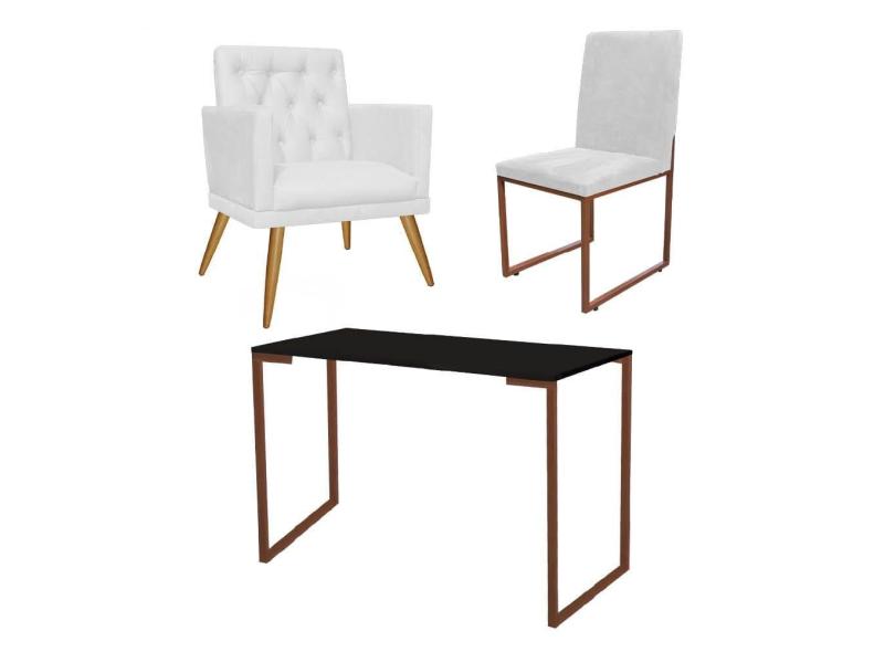 O menor preço encontrado no Brasil para Kit Escritório Stan Poltrona Maria com Cadeira e Mesa Industrial Preto Bronze Tecido Sintético Branco - Ahz Móveis atualmente é R$ 1.099,90.