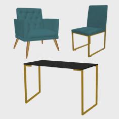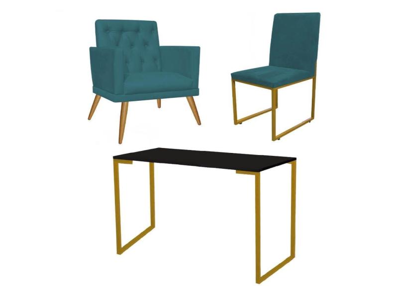 O menor preço encontrado no Brasil para Kit Escritório Stan Poltrona Maria com Cadeira e Mesa Industrial Preto Dourado Suede Azul Turquesa - Ahz Móveis atualmente é R$ 1.099,90.