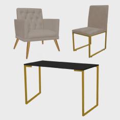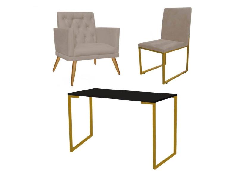 O menor preço encontrado no Brasil para Kit Escritório Stan Poltrona Maria com Cadeira e Mesa Industrial Preto Dourado Tecido Sintético Bege - Ahz Móveis atualmente é R$ 1.099,90.