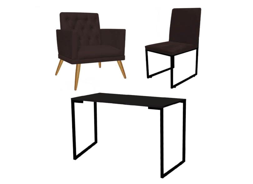 O menor preço encontrado no Brasil para Kit Escritório Stan Poltrona Maria com Cadeira e Mesa Industrial Tampo Preto Tecido Sintético Marrom - Ahz Móveis atualmente é R$ 1.099,90.