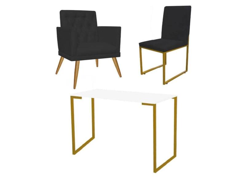 O menor preço encontrado no Brasil para Kit Escritório Stan Poltrona Maria e Cadeira e Mesa Industrial Branco Dourado Corino Preto - Ahz Móveis atualmente é R$ 1.099,90.