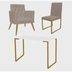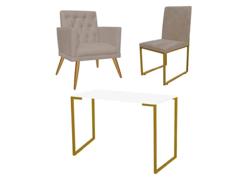 O menor preço encontrado no Brasil para Kit Escritório Stan Poltrona Maria e Cadeira e Mesa Industrial Branco Dourado Suede Bege - Ahz Móveis atualmente é R$ 1.099,90.