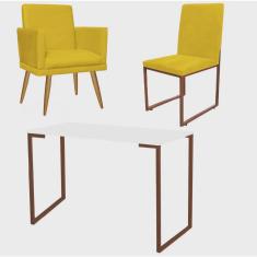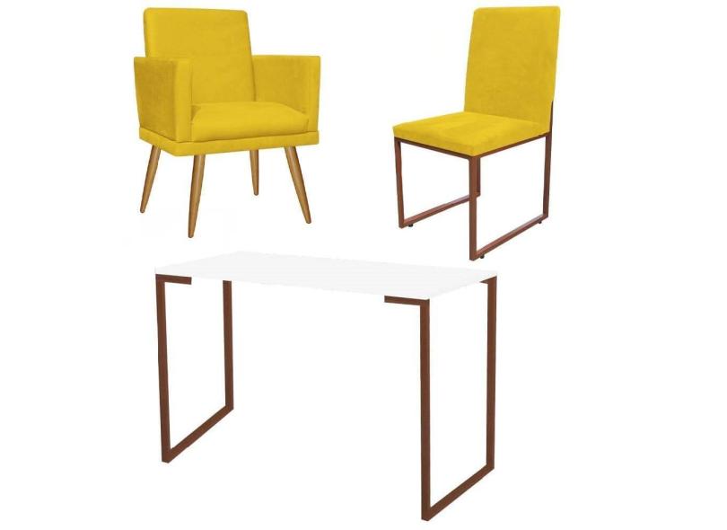 O menor preço encontrado no Brasil para Kit Escritório Stan Poltrona Rodapé com Cadeira e Mesa Industrial Branco Bronze Corino Amarelo - Ahz Móveis atualmente é R$ 1.059,90.