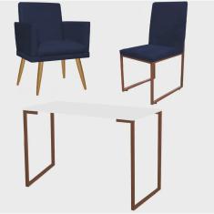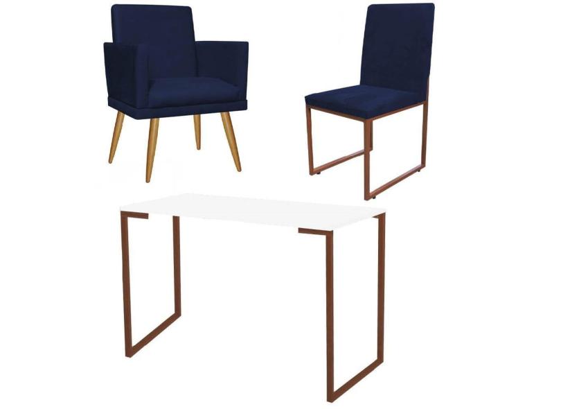 O menor preço encontrado no Brasil para Kit Escritório Stan Poltrona Rodapé com Cadeira e Mesa Industrial Branco Bronze Suede Azul Marinho - Ahz Móveis atualmente é R$ 1.059,90.