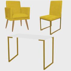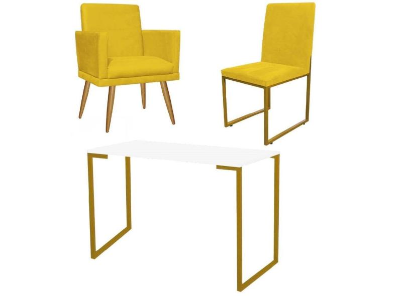 O menor preço encontrado no Brasil para Kit Escritório Stan Poltrona Rodapé com Cadeira e Mesa Industrial Branco Dourado Tecido Sintético Amarelo - Ahz Móveis atualmente é R$ 1.059,90.