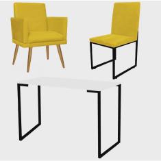 O menor preço encontrado no Brasil para Kit Escritório Stan Poltrona Rodapé com Cadeira e Mesa Industrial Branco Preto Tecido Sintético Amarelo - Ahz Móveis atualmente é R$ 1.059,90.