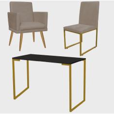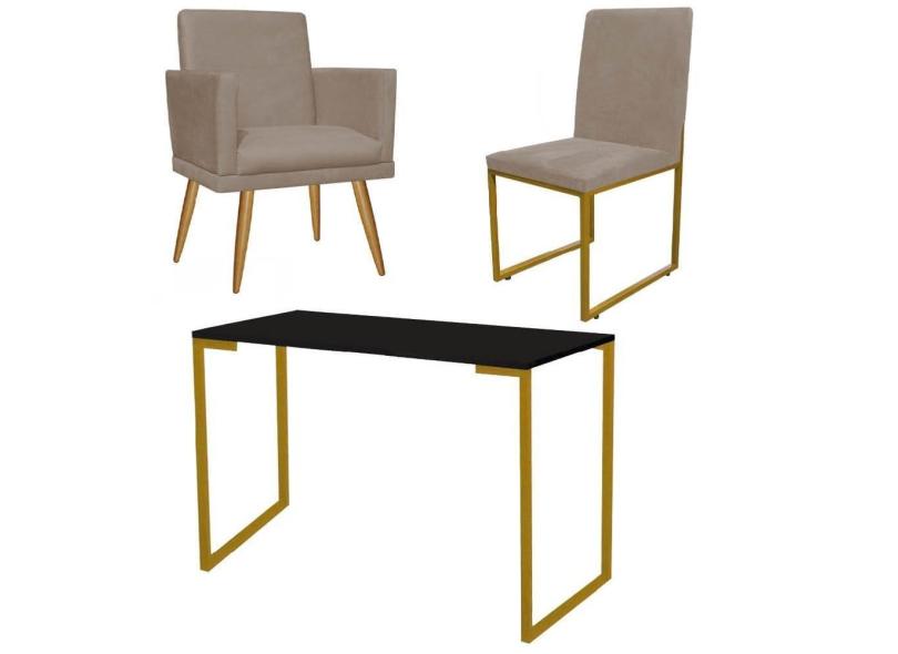 O menor preço encontrado no Brasil para Kit Escritório Stan Poltrona Rodapé com Cadeira e Mesa Industrial Preto Dourado Tecido Sintético Bege - Ahz Móveis atualmente é R$ 1.059,90.