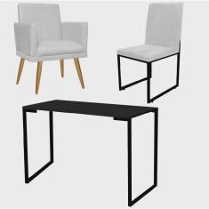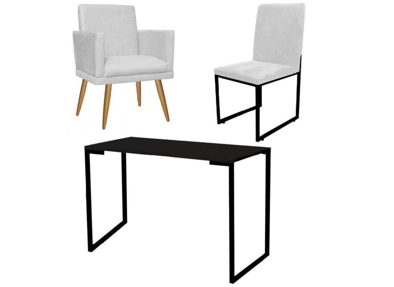 O menor preço encontrado no Brasil para Kit Escritório Stan Poltrona Rodapé com Cadeira e Mesa Industrial Tampo Preto Corino Branco - Ahz Móveis atualmente é R$ 1.059,90.