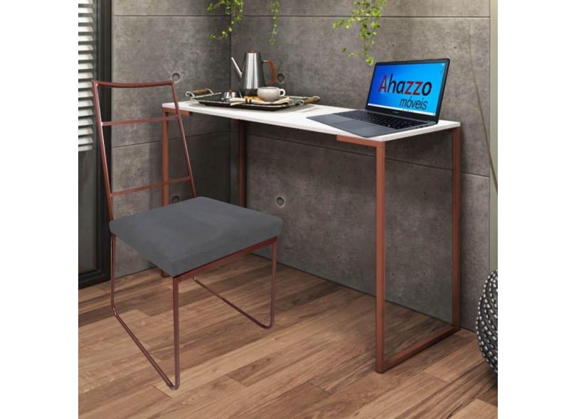 Kit Escritório Stark Cadeira e Mesa Industrial Ferro Bronze Tampo MDF Branco Sintético Cinza - Ahz Móveis