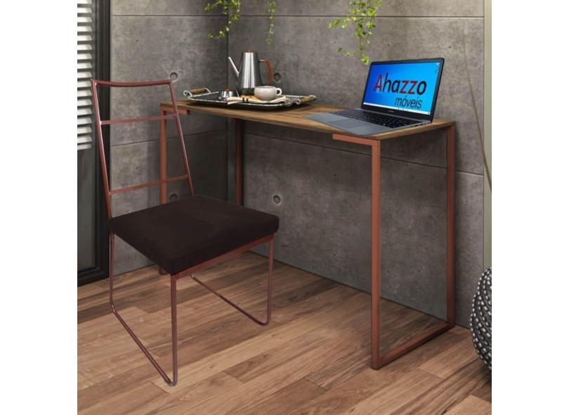 Kit Escritório Stark Cadeira e Mesa Industrial Ferro Bronze Tampo MDF Caramelo Suede Marrom - Ahz Móveis