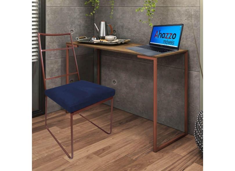 Kit Escritório Stark Cadeira e Mesa Industrial Ferro Bronze Tampo MDF Castanho Suede Azul Marinho - Ahz Móveis
