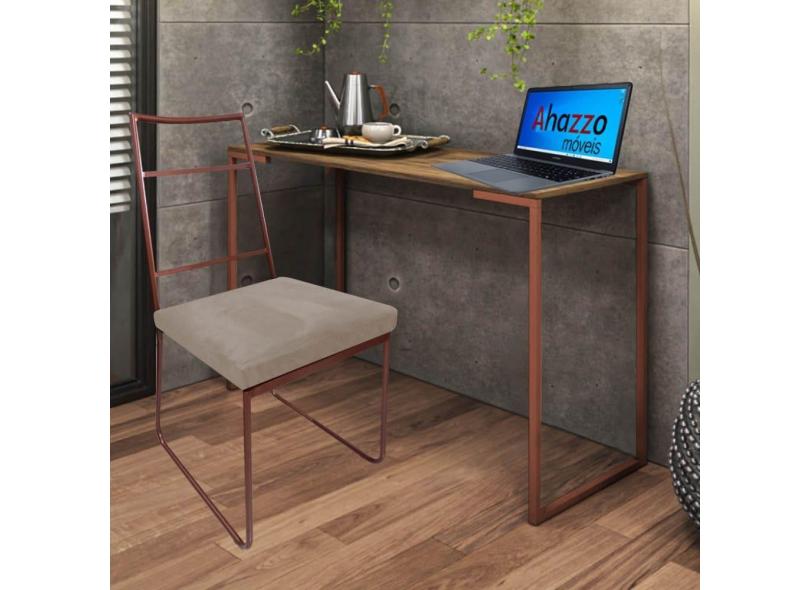 Kit Escritório Stark Cadeira e Mesa Industrial Ferro Bronze Tampo MDF Imbuia Sintético Bege - Ahz Móveis