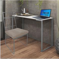 Kit Escritório Stark Cadeira e Mesa Industrial Ferro Cinza Tampo MDF Branco Sintético Bege - Ahz Móveis