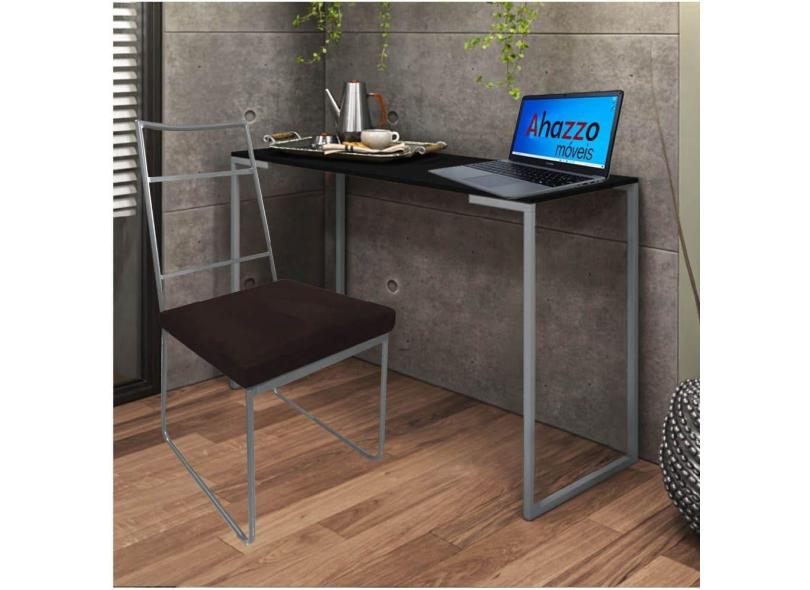 Kit Escritório Stark Cadeira e Mesa Industrial Ferro Cinza Tampo MDF Castanho Corino Marrom - Ahz Móveis