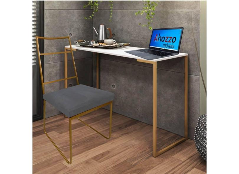Kit Escritório Stark Cadeira e Mesa Industrial Ferro Dourado Tampo MDF Branco Sintético Cinza - Ahz Móveis