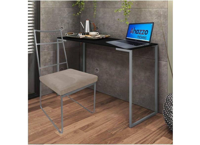 Kit Escritório Stark Cadeira e Mesa Industrial Ferro Prata Tampo MDF Caramelo Corino Bege - Ahz Móveis