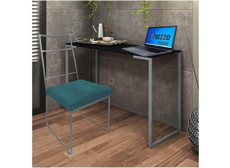 Kit Escritório Stark Cadeira e Mesa Industrial Ferro Prata Tampo MDF Imbuia Suede Azul Turquesa - Ahz Móveis