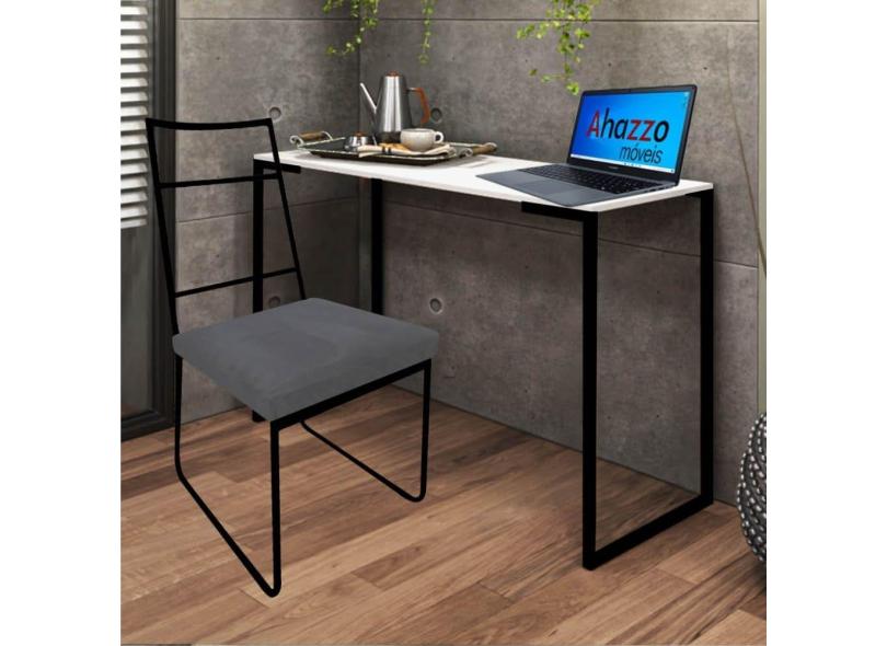 Kit Escritório Stark Cadeira e Mesa Industrial Ferro Preto Tampo MDF Branco Suede Cinza - Ahz Móveis