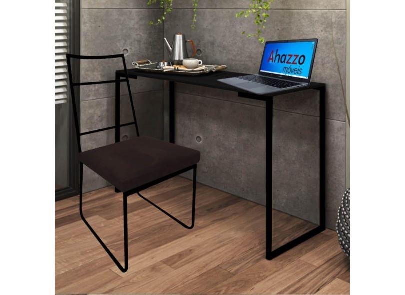 Kit Escritório Stark Cadeira e Mesa Industrial Ferro Preto Tampo MDF Preto Corino Marrom - Ahz Móveis
