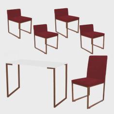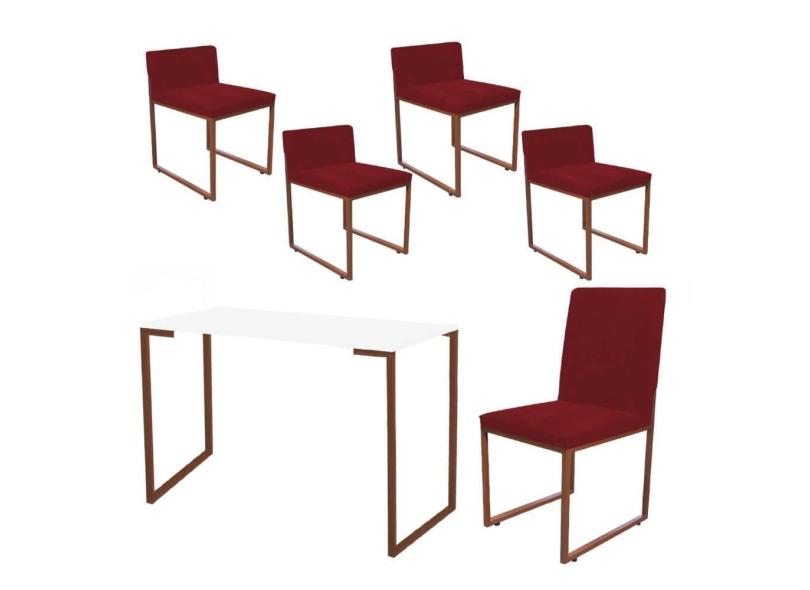 O menor preço encontrado no Brasil para Kit Mesa Escrivaninha com Cadeira Stan e 4 Poltronas Lee Tampo Branco Ferro Bronze Suede Vermelho - Ahz Móveis atualmente é R$ 1.999,90.