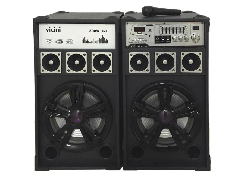 Conjunto 2 Caixas Acústicas Bluetooth 300WRMS Vicini VC-7300 com Microfone e Entradas USB, SD e para Guitarra Preto