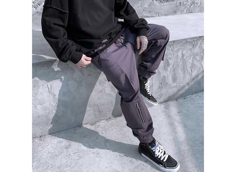 Calça Cargo Moda Casual Masculina Com Decoração de Corda Fita