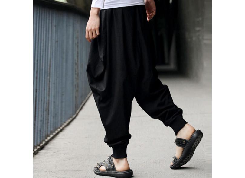Calça Harem Masculina de Algodão Linho Festival Calça Baggy Solid Calça Retro Gypsy