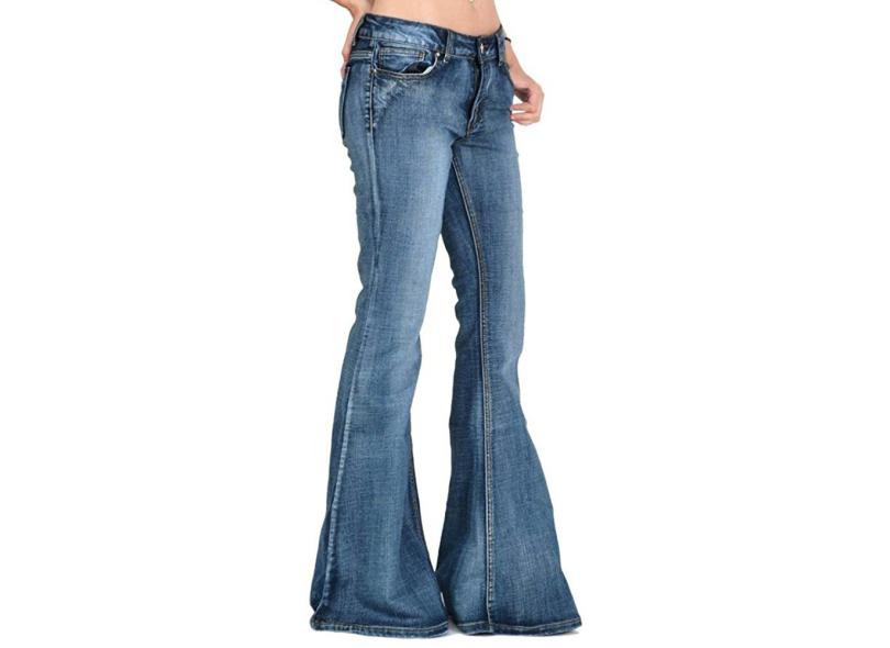 Calça jeans feminina Destoryed Flare com botão de cintura baixa calça jeans