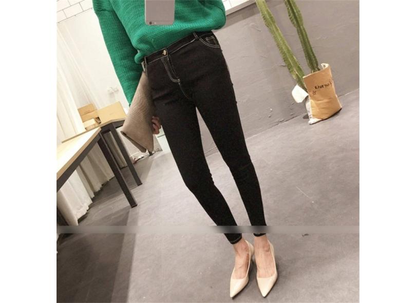 Calça jeans skinny elástica de cintura alta, moda feminina primavera all-match, lápis