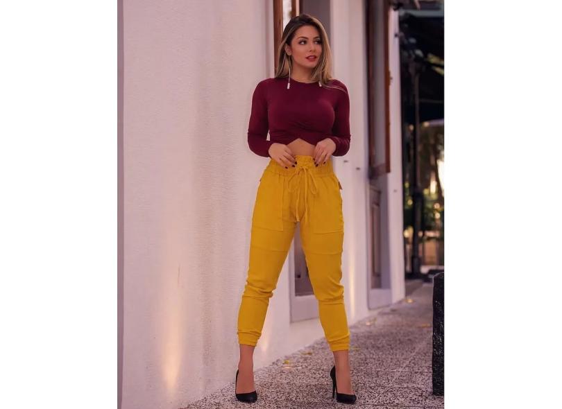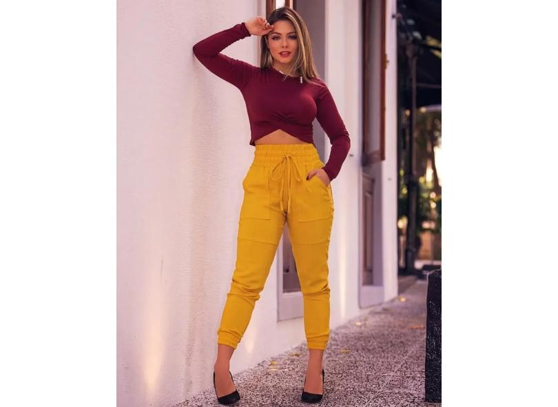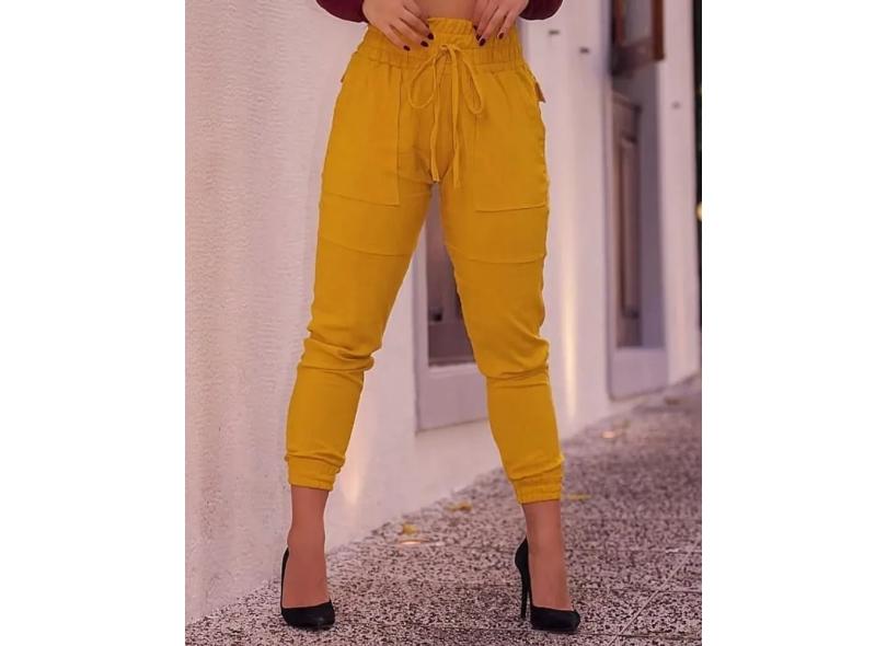Calça Jogger em Suede - mostarda