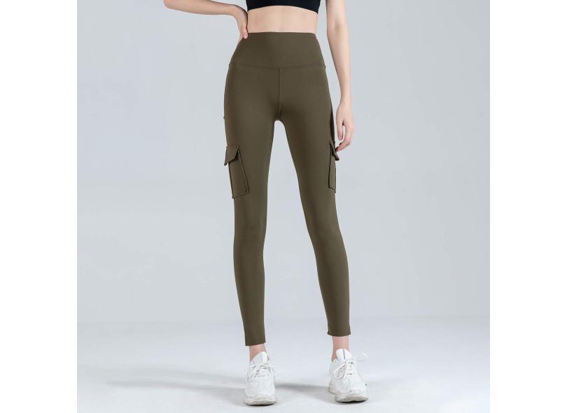 Leeofty Calça cargo feminina de compressão, cintura alta, vários bolsos, ioga, academia, atlética, lisa, colado ao corpo