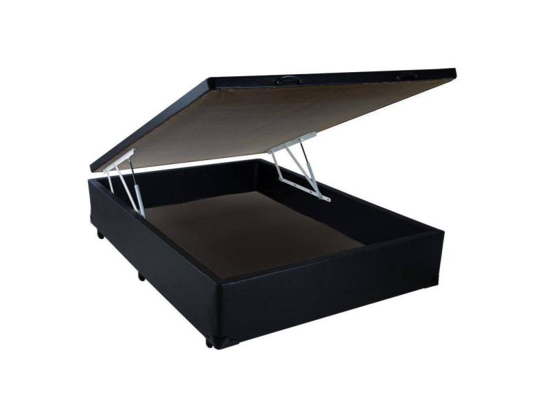 Base Box Baú Casal AColchões Sintético Preto 41x138x188