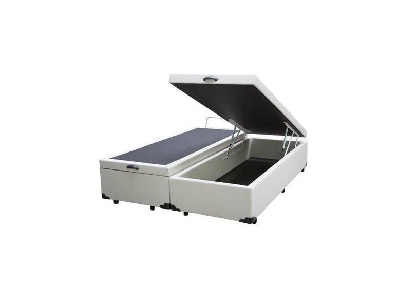 Base Box Baú Casal Bipartido Sintético Branco 39x138x188 - Lordcolchoe