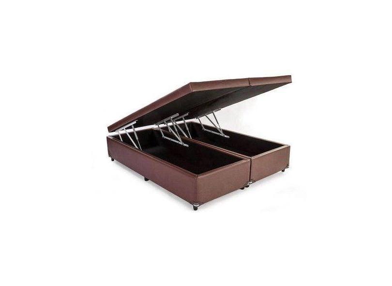 Base Box Baú Casal Bipartido Sintético Marrom - 138X188x35 - Dmhope7