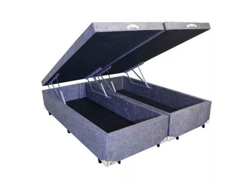 Base Box Baú Casal Bipartido Suede Cinza 138x39x188