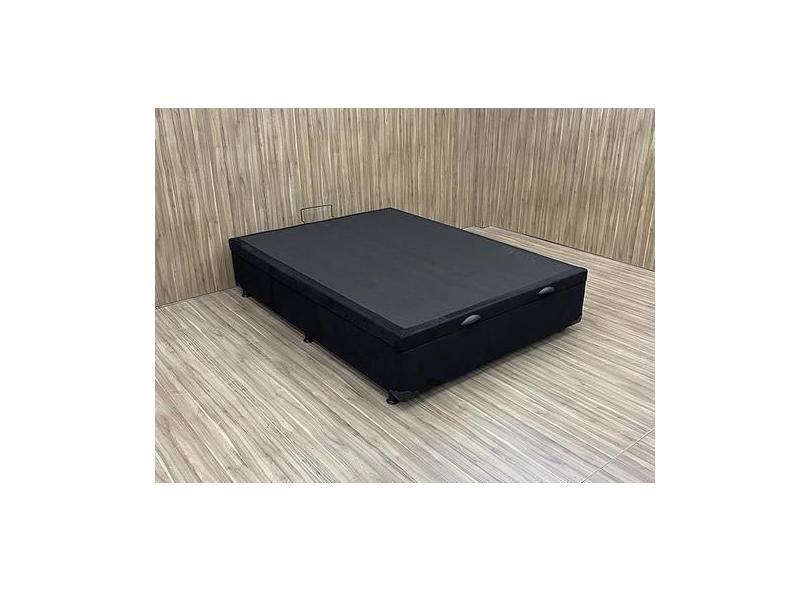 Base Box Baú Casal Blindado Suede Preto 36X138x188 An - Alpoim