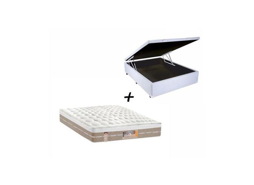 Base Box Baú Casal Branco + Colchão Castor Casal Molas Pocket Silver S