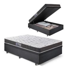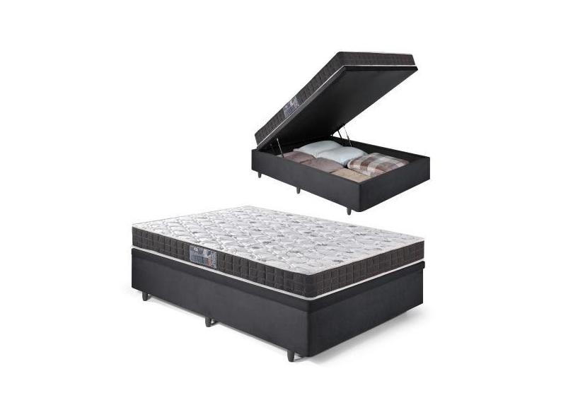Base Box Baú Casal Suede Preto 138x188x34cm com Colchão de Espuma Thie