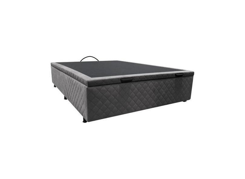 Base Box Baú Para Cama Casal 138x188cm Liz S05 Suede Bordado Cinza - M