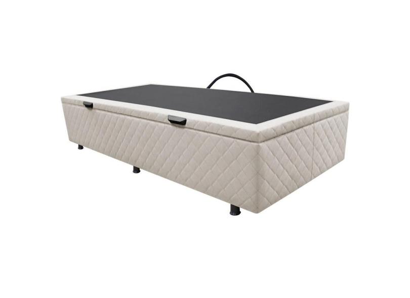 Base Box Baú Para Cama Solteiro 88X188cm Liz S05 Suede Bordado Bege - Mpozenato