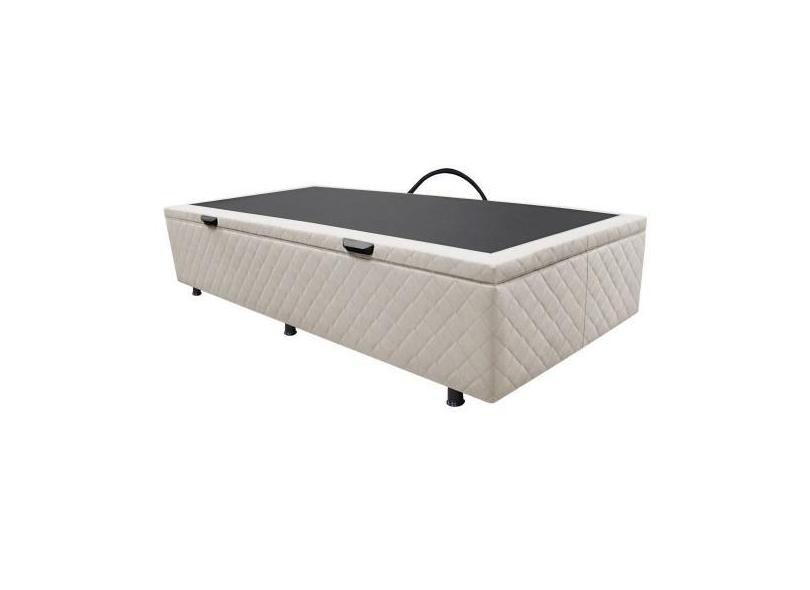 Base Box Baú Para Cama Solteiro 88X188cm Liz S05 Suede Bordado Bege -