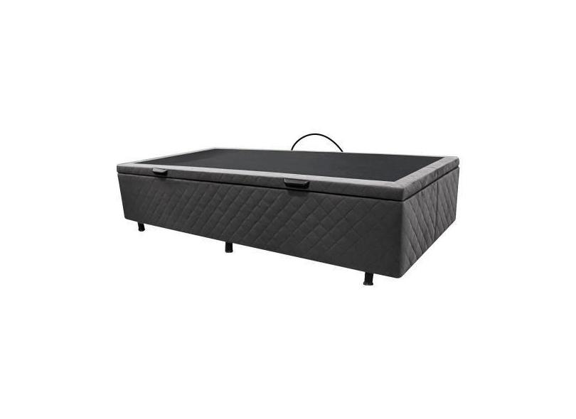 Base Box Baú Para Cama Solteiro 88x188cm Liz S05 Suede Bordado Cinza -